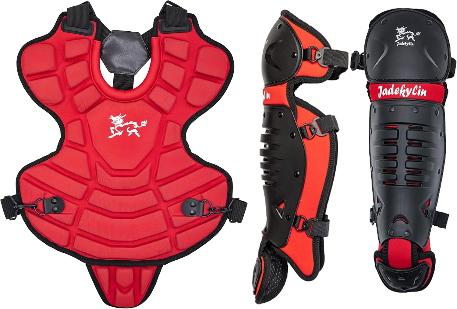 - Both the chest protector and leg guards are durable and lightweight. Clips closure attachment for quick on and off.