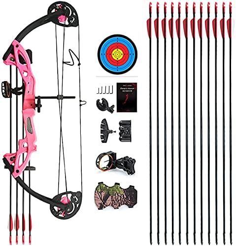 - 【ADVANCED CONSTRUCTION 】: Adjustable draw weight & draw length without bow press ; Available in Red, Green, Blue, Black and Pink ; String stopping function; The speed is higher than the same bow ; Light