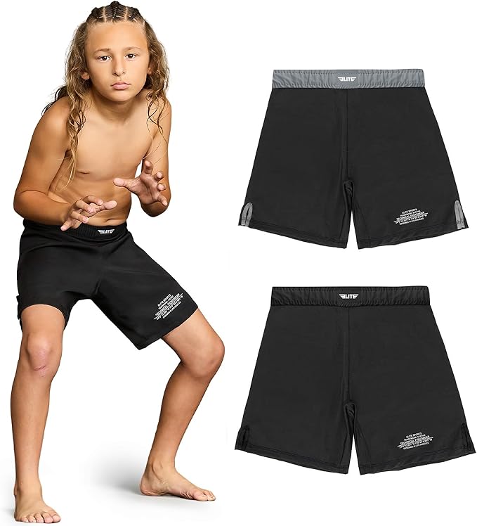 - ✅[DURABLE ELASTIC WAISTBAND & DRAWSTRING CLOSURE] – The Elite kids juijitsu shorts have sturdy elastic kid shorts no gi waistband that keeps kids Jiu Jitsu board shorts in place during training and fights so you can move freely without worrying about your youth MMA shorts falling during the match or sparring. These BJJ shorts for girls & boys with drawstring closure offer the flexibility required for dynamic movements of BJJ. The youth no gi shorts drawstring allows you to adjust the shorts.