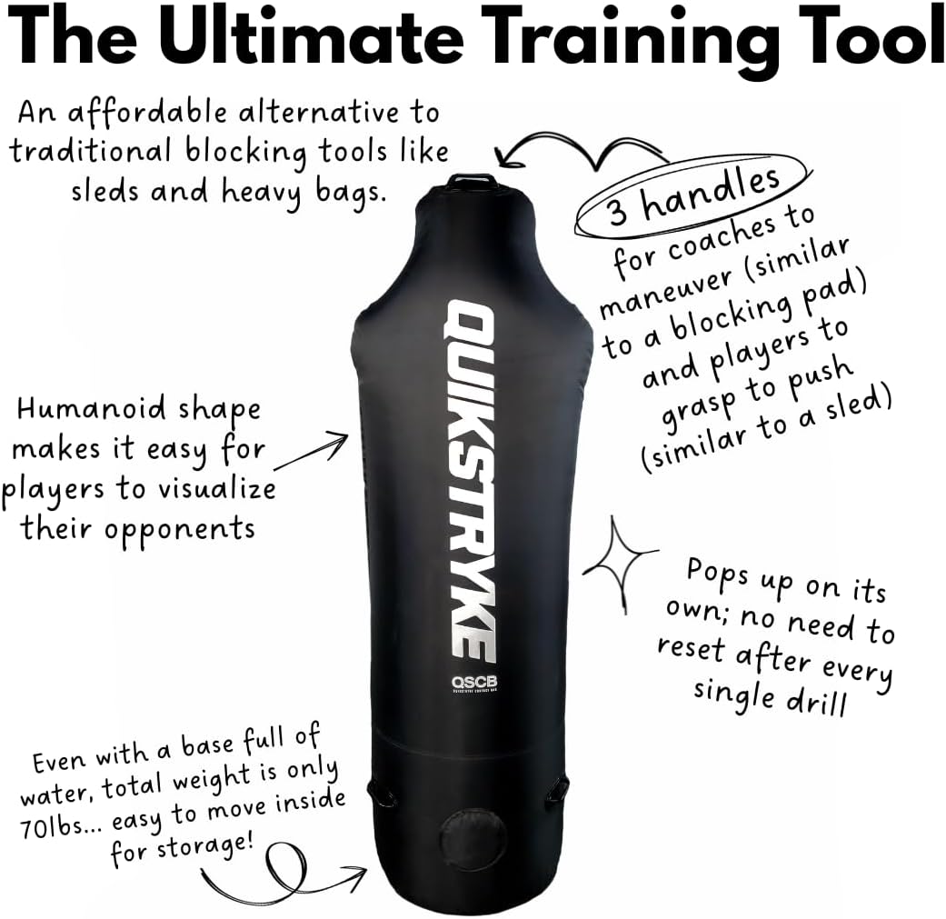 • [Safe]: Air inside cushions blow for young players, reducing impact injuries at practice; size and shape simulates real player so players can learn proper tackle techniques, follow-through and momentum management while avoiding injuring other players, coaches or themselves