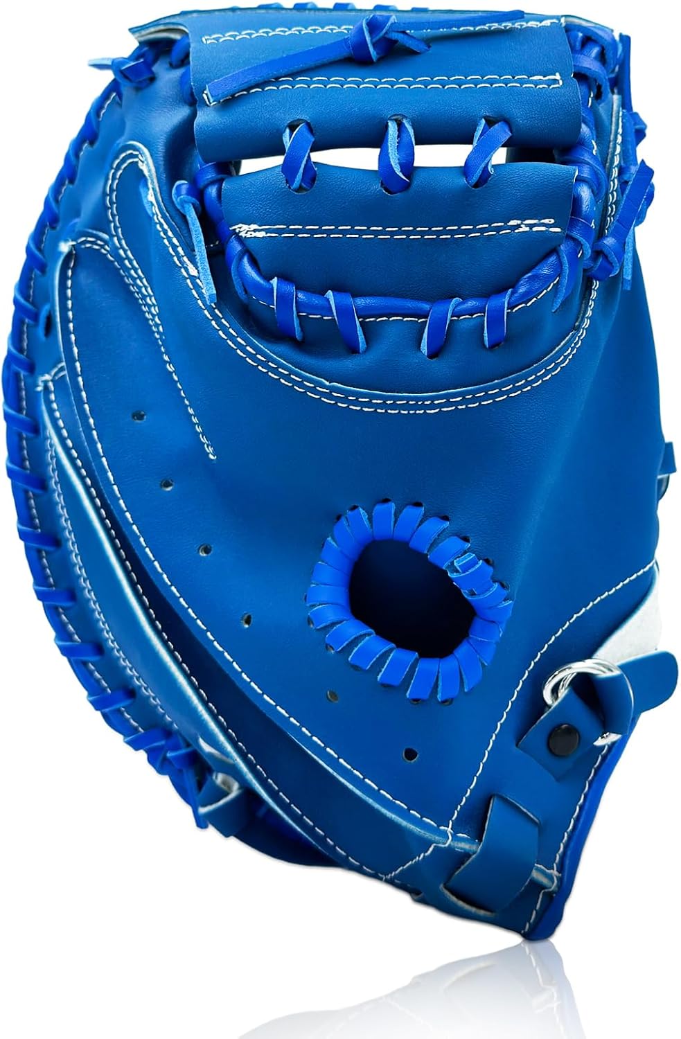 • HIGH-QUALITY LEATHER, HAND-STITCHED: Fully customized high-quality leather ensures a stunning look with leather cord and professional baseball glove sewing thread (double suture thread) to strengthen. The trap-style shallow pocket makes it an especially good choice for the catchers as it allows a player to quickly snag the baseball, makes scooping and catching smooth then transfer it to the throwing hand