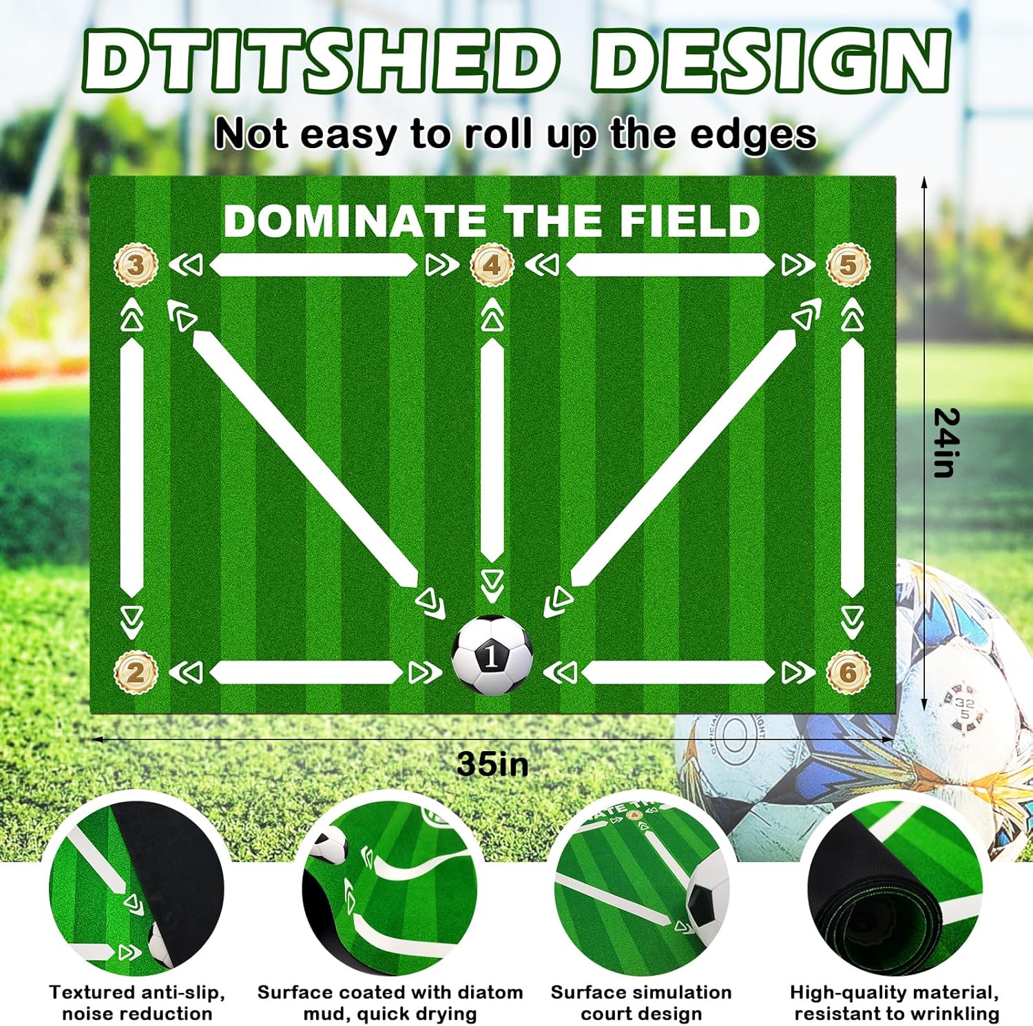 - Perfect Soccer Training Assistant: Enhance your soccer skills with the Soccer Training Mat! Designed to improve ball control, agility, and footwork, this 35″x24″ mat features clear markings for precise drills. Ideal for soccer mat training and soccer training equipment.