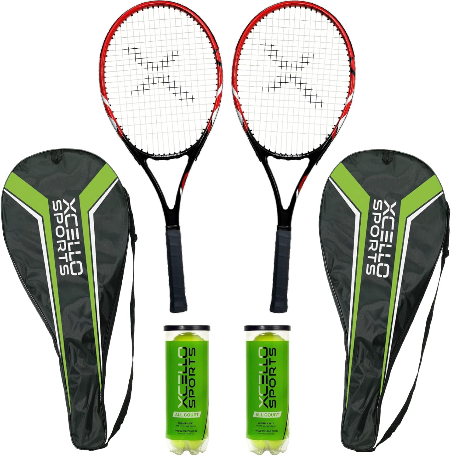 • A COMPLETE SET – The Xcello Sports 27″ Tennis Racket set comes with two Rackets, six tennis balls, and two oxford carrying cases.