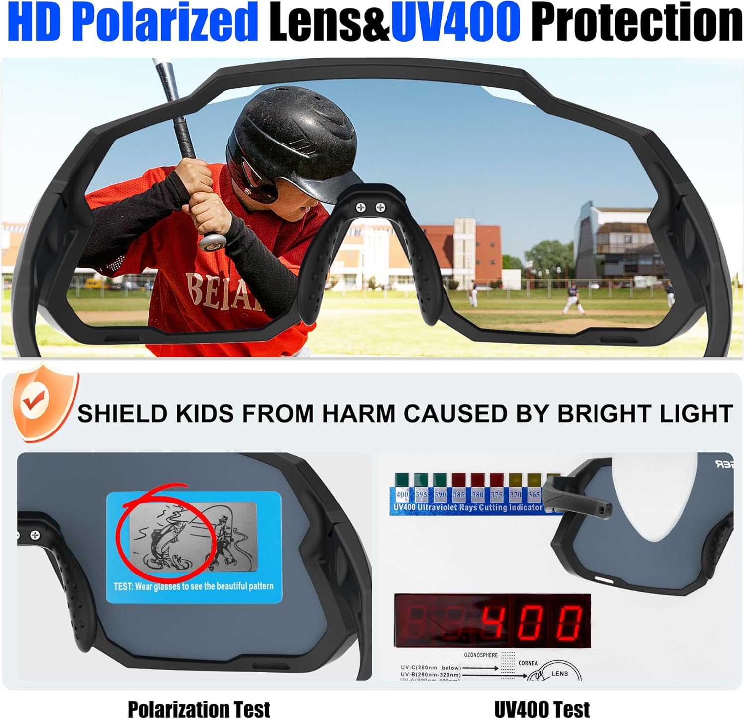 - Designed for Kids:X-TIGER Baseball Sunglasses for Boys Girls suitable for ages 6-8-10-12-14, protect children’s eyes,perfect fit,lightweight,comfortable and super durable and is built.vibrant frame and lens colour options,empowering kids to choose their preferred style.